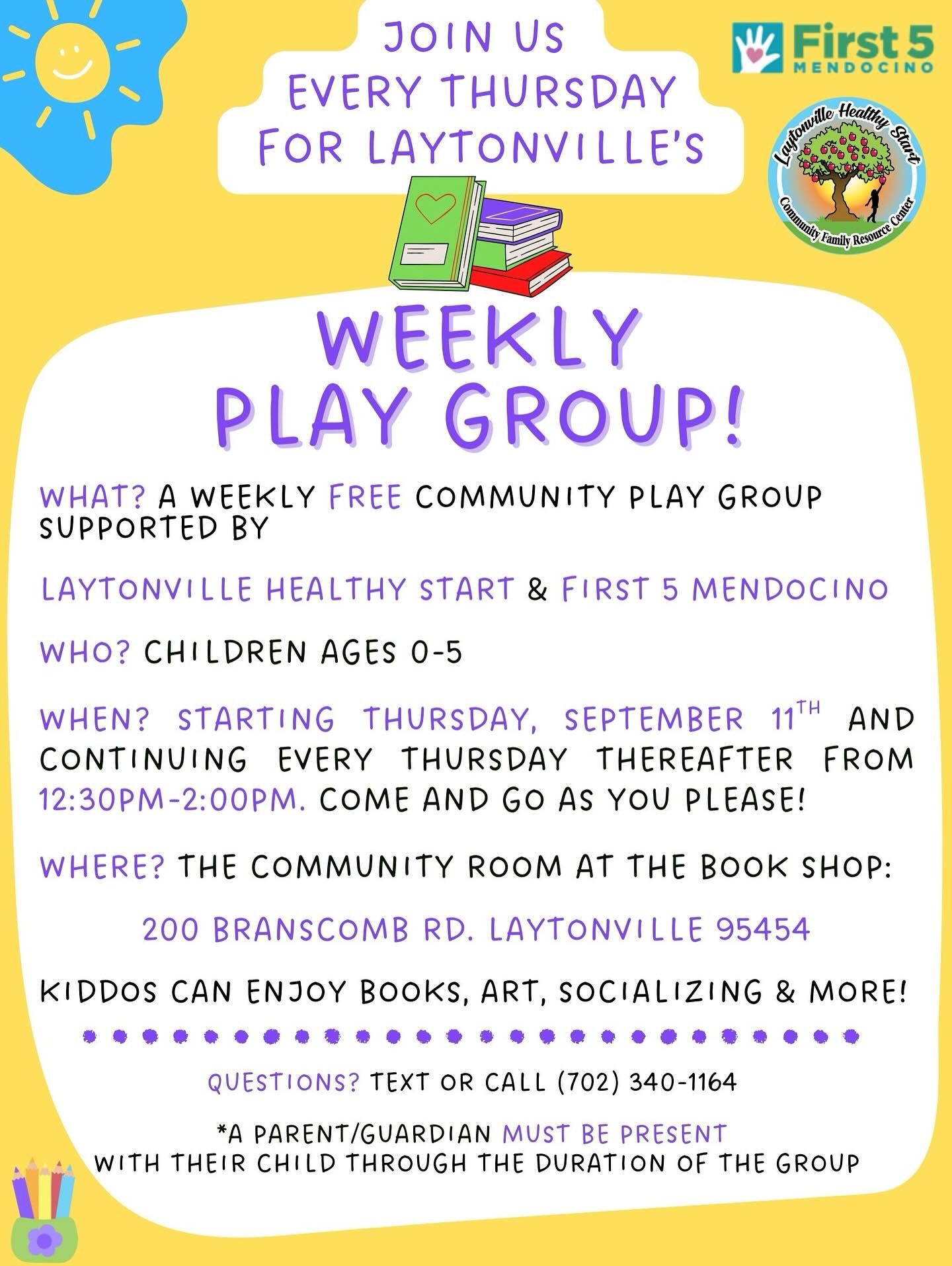 For more information, visit https://www.first5humboldt.org/for-families/playgroups/.