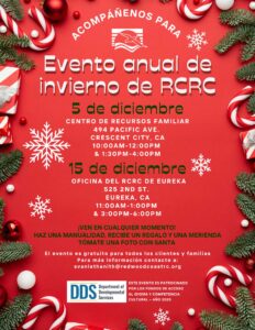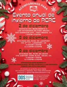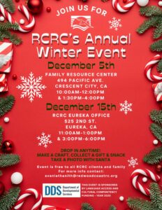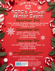 RCRC is preparing for our annual winter holiday event. All RCRC clients, their families and their caregivers are welcome to join in the festivities. We will have crafting activities, gifts, snacks and an opportunity to take a photo with Santa if you’d like.