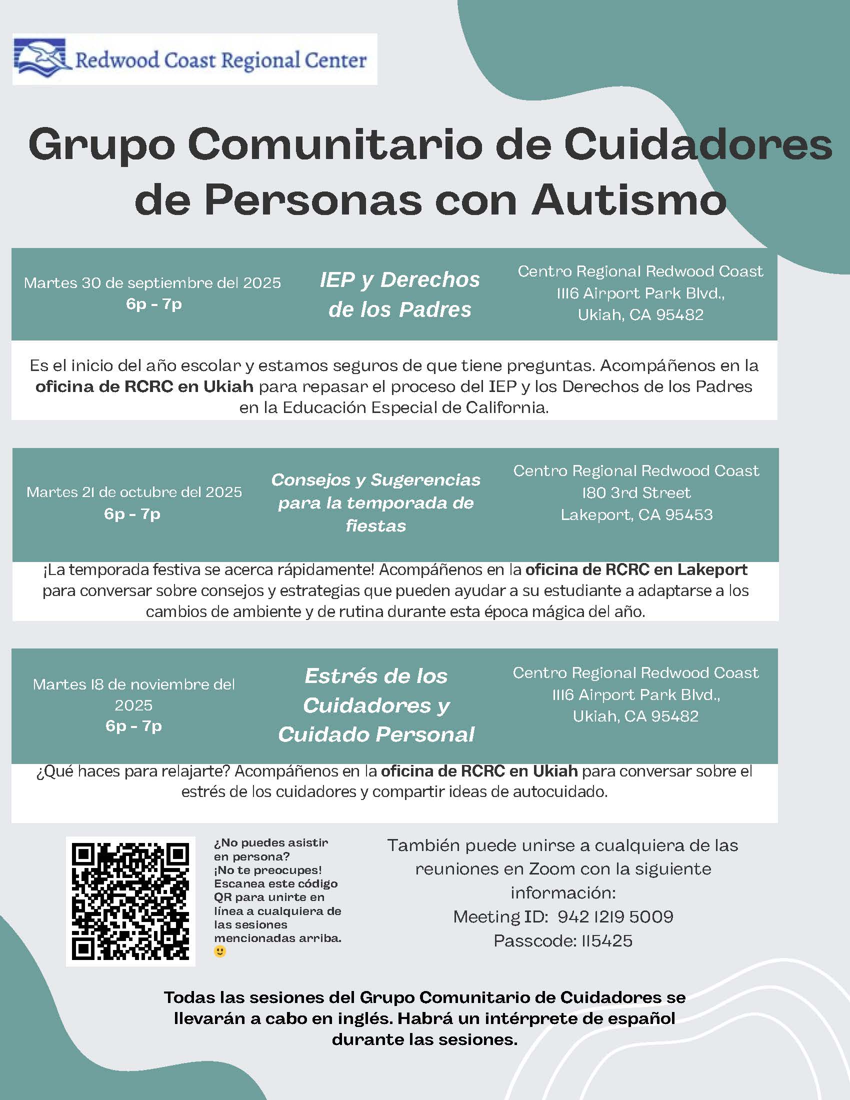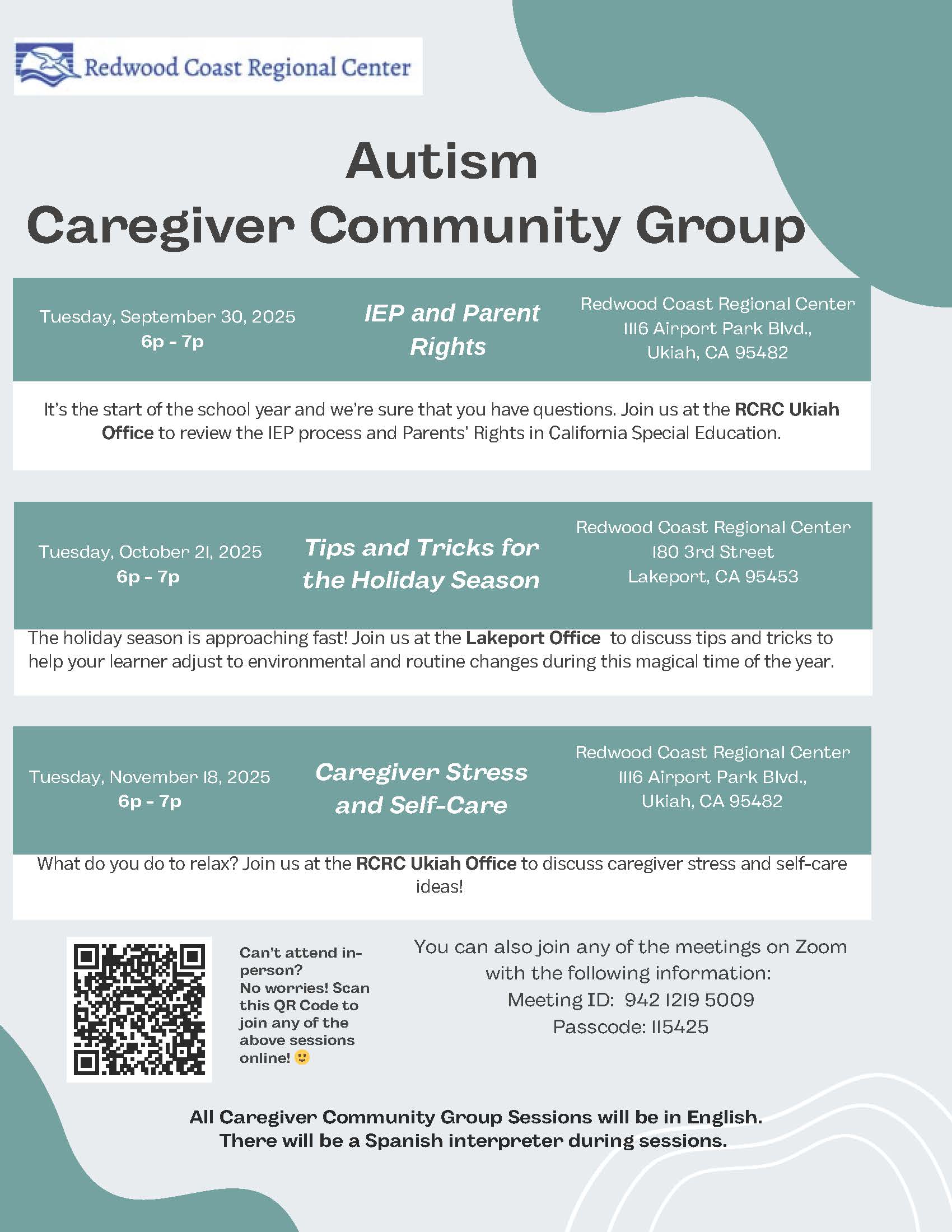 Join RCRC for an Autism Caregiver Community Group. The discussion is free and presented in English with a Spanish interpreter.